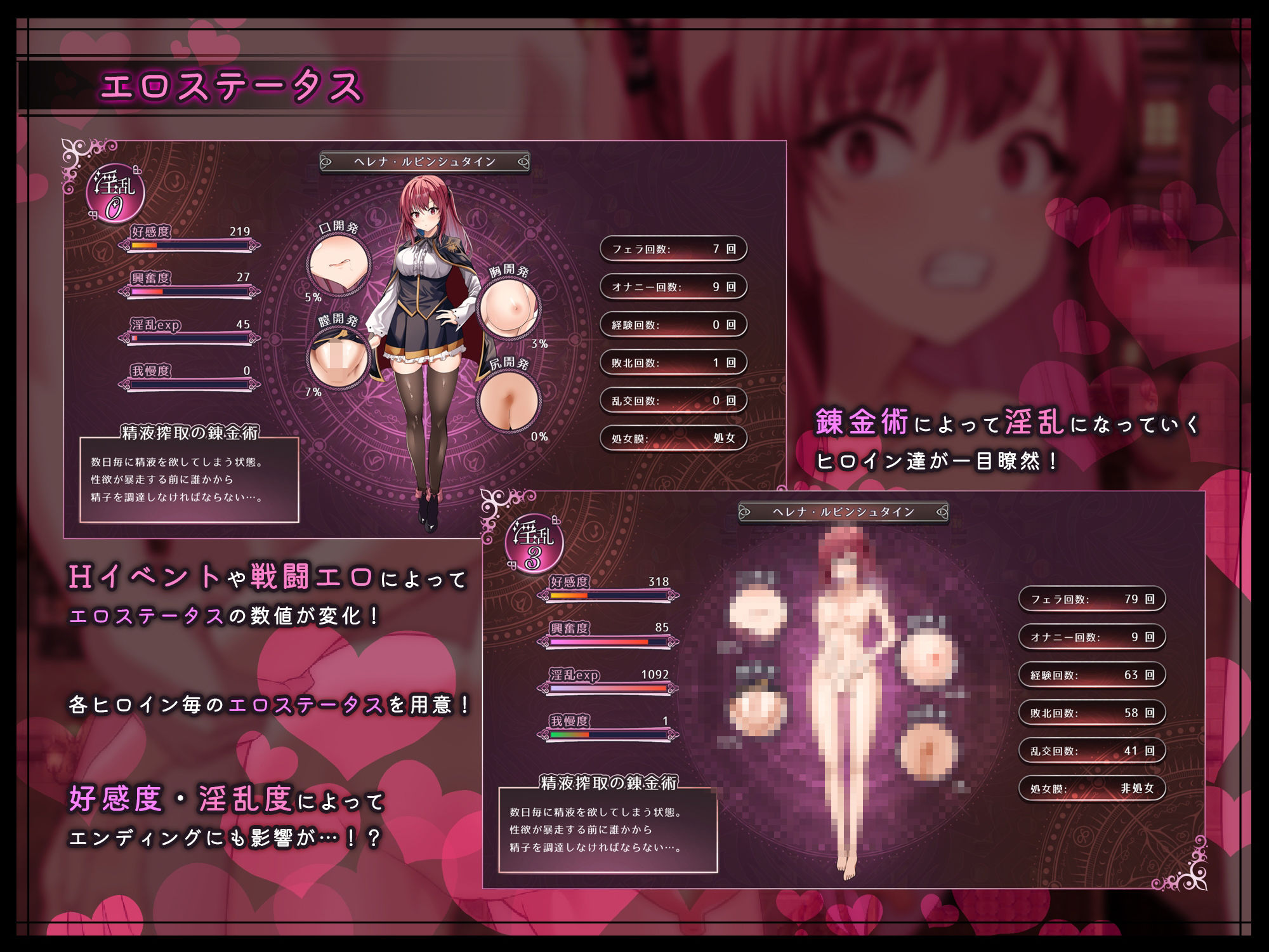 各ヒロイン毎に用意されたエロステータス!